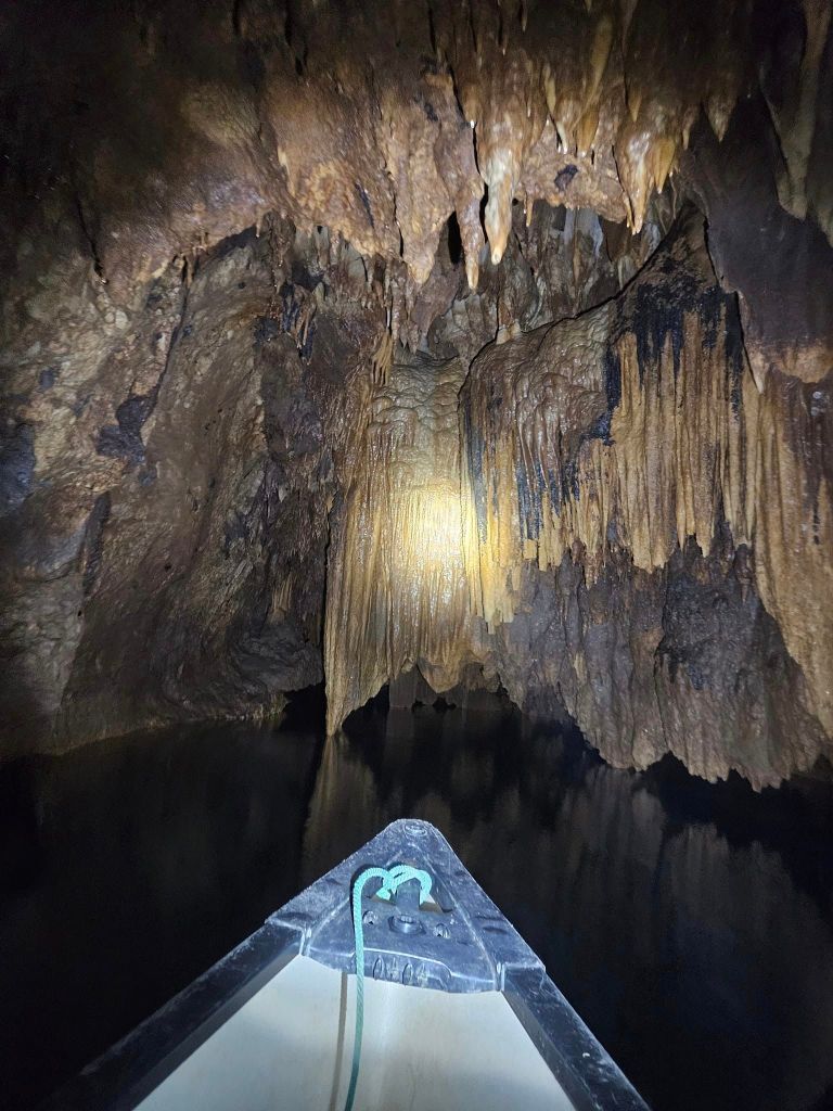 As we canoed into the cave with our headlamps, we revealed soaring cathedral-like caverns dripping with stalactites and stalagmites. Our guide was so thorough in explaining all of the cave’s formations, and how with just as many caves as have been discovered in Belize, there are that many and more that have not yet been explored.